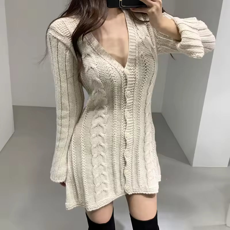 Que ce soit pour un brunch entre amis, un rendez-vous, les cours ou une sortie décontractée, cette robe tricotée chic allie confort, féminité et élégance moderne. Un indispensable mode pour affronter la saison automne-hiver avec style.
